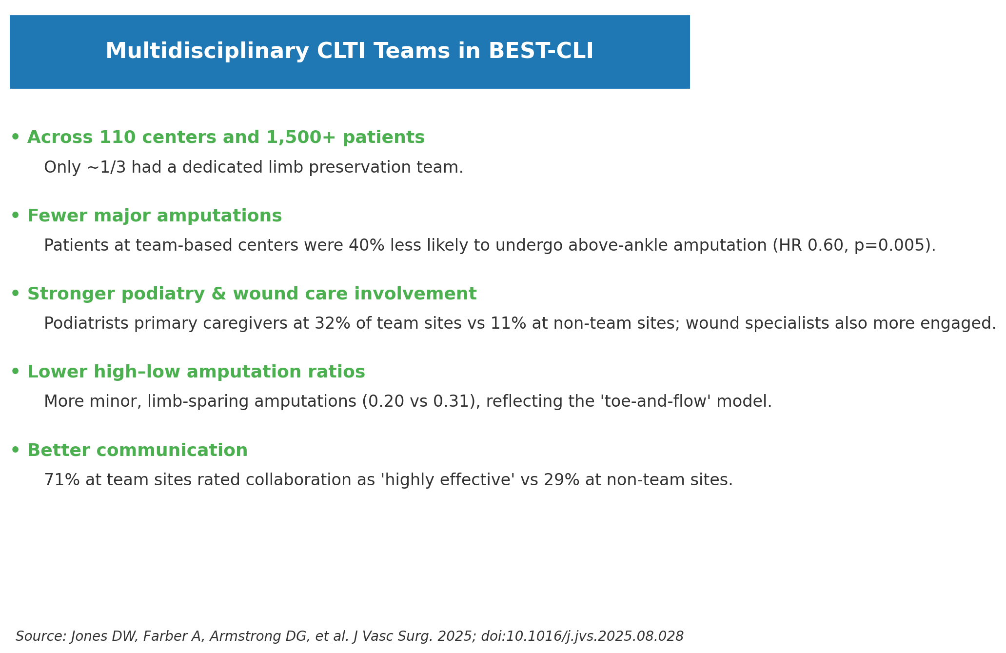Teamwork Saves Limbs: BEST-CLI Analysis Highlights Power of Multidisciplinary Care #ActAgainstAmputation @ALPSlimb @BEST_CLI